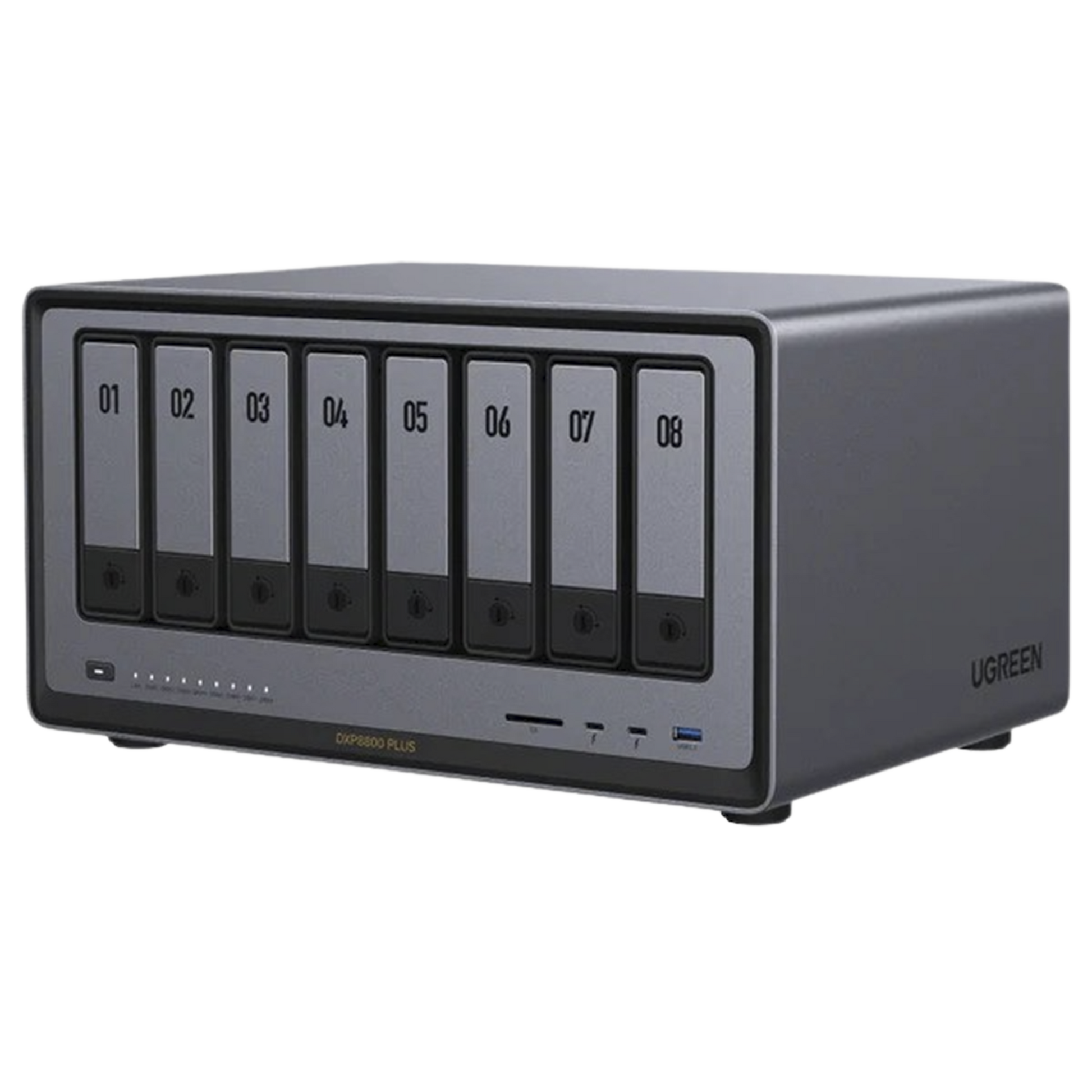 NASync DXP8800 Plus | SO UGOS Pro | Intel X86 12th Gen Intel® Core™ i5 | SSD 128 GB | 8-Bahias (SATA) | 8GB DDR5 (Exp. a 32GB) | 2* M.2 SSD | 4 Puertos Thunderbolt™4 | WiFi | 1*USB3.2 Gen2, 10Gb/s | HDMI 8k.