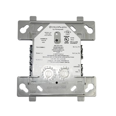 El módulo de relé CRF-300 de Fire-Lite proporciona dos salidas de relevador de forma C para activar una variedad de dispositivos auxiliares, como ventiladores, compuertas, soportes de puerta, equipos de control, etc.