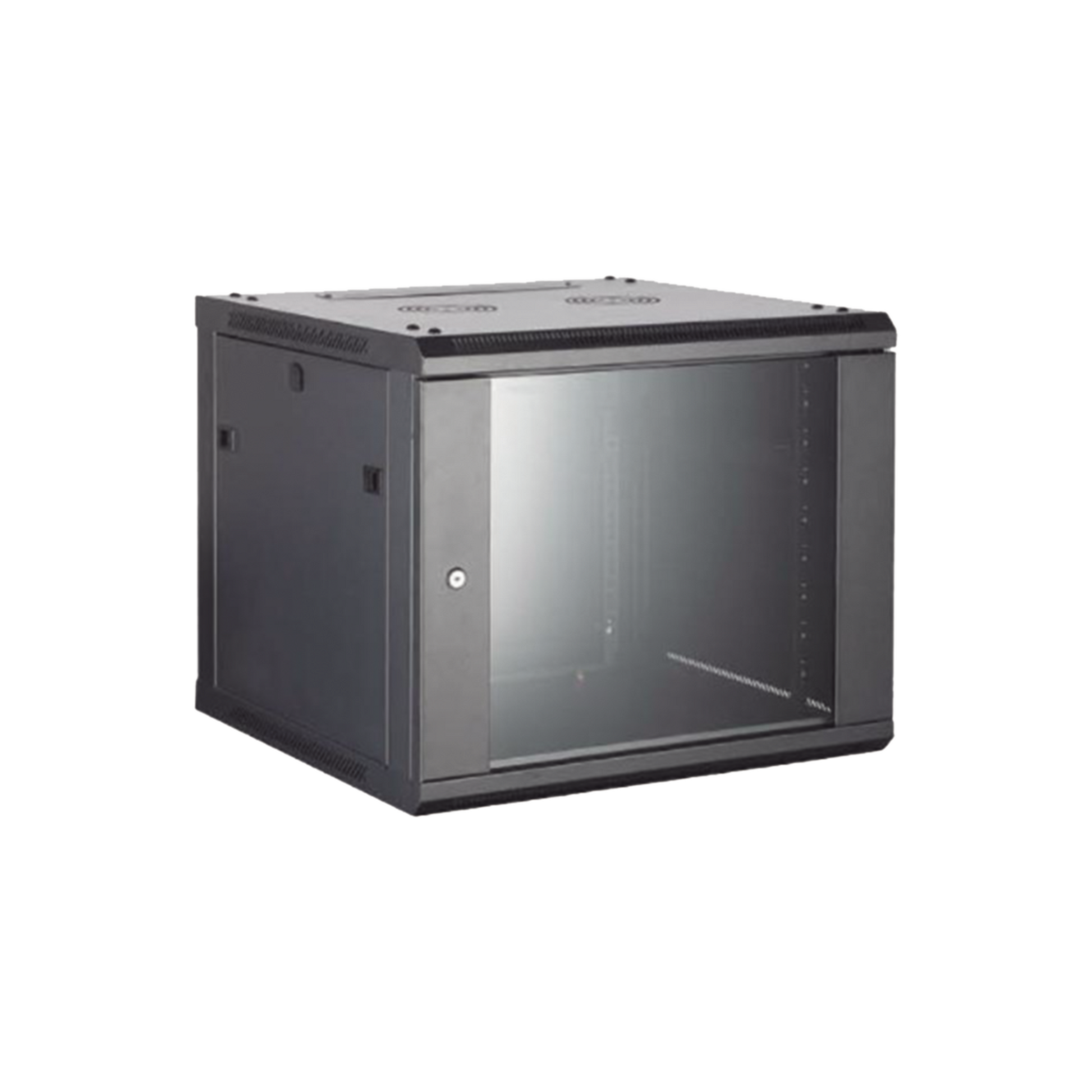 Gabinete para Montaje en Pared - Piso / Puerta de Cristal Templado / Cuerpo Fijo / 4 Unidades de Rack / 19" / Fabricado en Acero