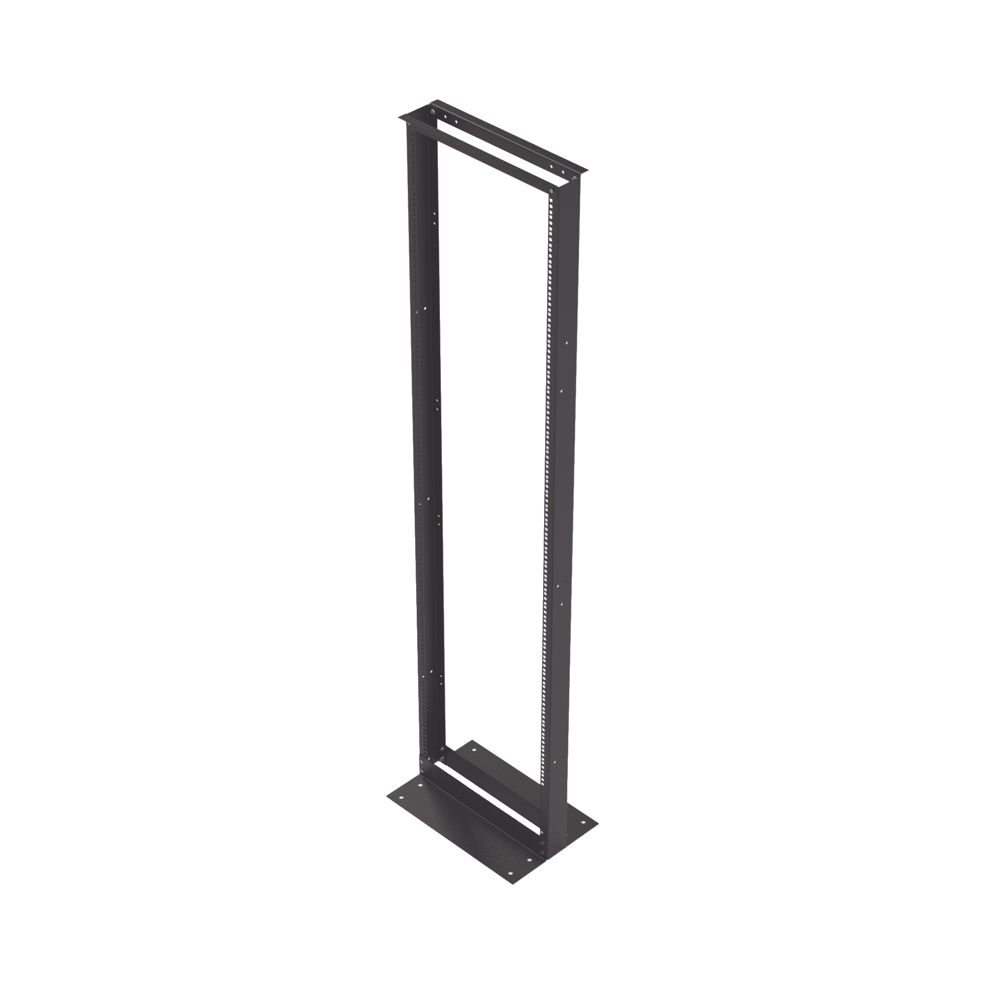 - Rack de dos postes con base tipo "L" para fijación al piso (Fijación necesaria para estabilidad).