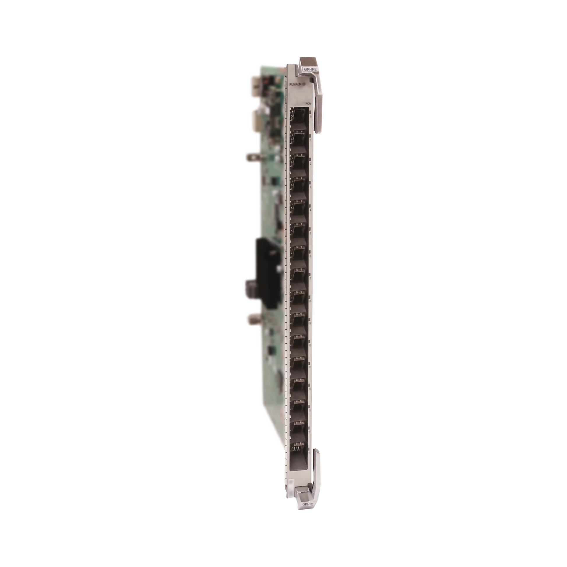 La tarjeta H903GPHFE02 es una tarjeta de interfaz con 16 puertos GPON. Trabaja en conjunto con un chasis EA5800 para brindar el servicio de acceso GPON a las ONTs/ONUs.